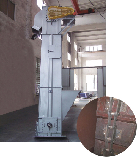 TH型鏈式斗提機載荷大,便于保養,可用于輸送量較大,密度>1.5t/m3的顆粒狀或小塊物料的輸送。